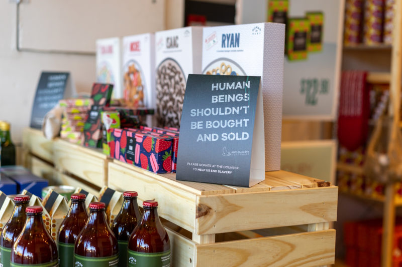 Coffee Cocoa Gunpowder, the creative agency from Chiquita King and Ant Melder, supported Anti-Slavery Australia in developing the concept of the store, and The Glue Society worked to bring it to life.