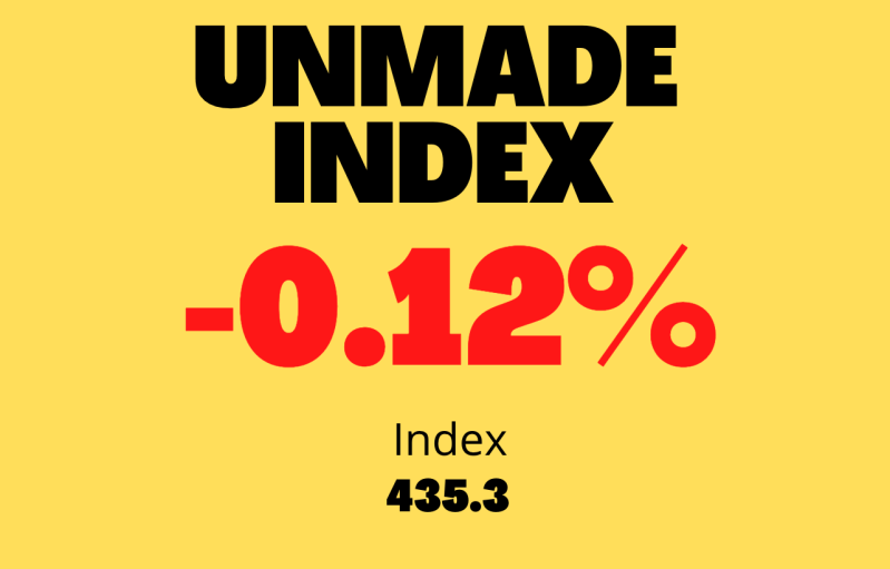 The Unmade Index closed on 435.3 points, a slight fall for the day of 0.12%.