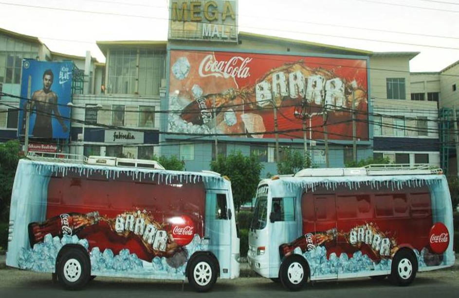 The attached photo doesn’t look like a new way of advertising… it looks like a horrible assault on the eyes. If coke did this in my neighbourhood I would certainly switch to Pepsi!