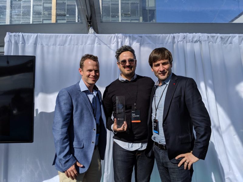 Paul Korber, Greg Ollivier of Microsoft, Dale Foenander of News Xtend accepting the award