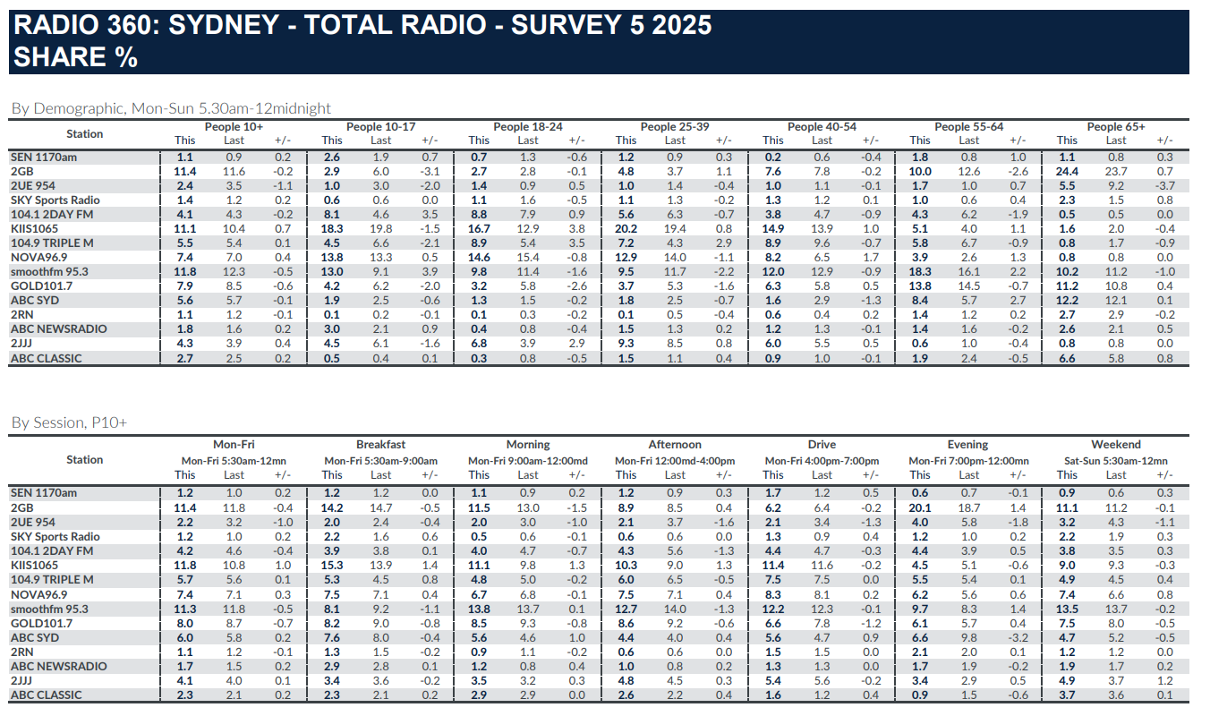 The closest FM competitors to Sandilands and Henderson are Jonesy and Amanda over on sister station GOLD101.7 — who have 8.2% of the audience, and will move to Drive in 2026 — and Smooth with Bogart Torelli, on 8.1%.