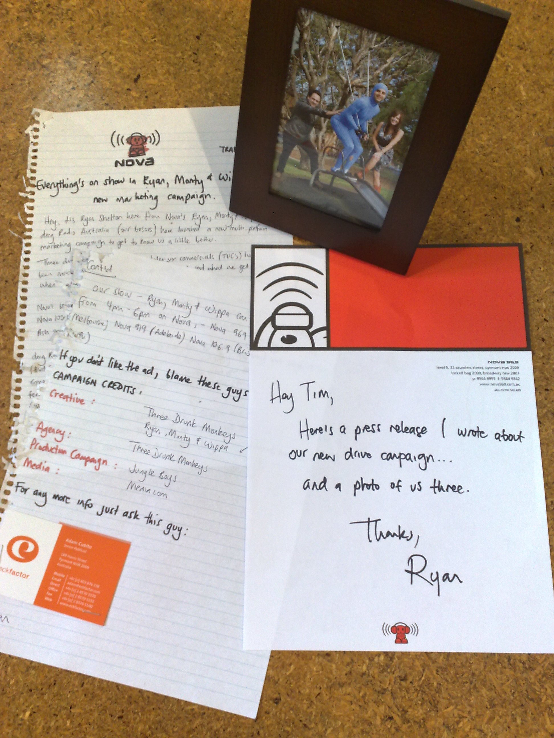 Great idea for a press release, I love the note paper with the ‘just torn from the book’ edges. It’s a shame about the show though.. it’s one thing to get publicity and another to keep the ratings.
