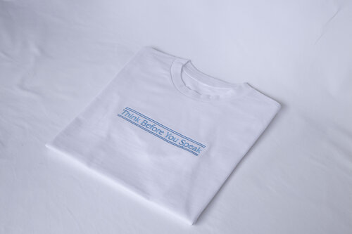 The garments are emblazoned with the phrases ‘think before you speak’ and ‘be decent’, which were chosen by Waters to prompt people to rethink their behaviour.