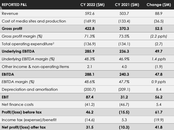 In its latest full-year earnings, ASX-listed out-of-home company oOh Media posted a 406% year-on-year (YoY) increase in reported net profit after tax to $31.5 million, bouncing back from a $10.3 million loss at the end of 2021.