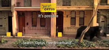 An animal doesn’t feature in the ad until the closing frame, when a bear makes deliveries of the yellow Optus cubes.