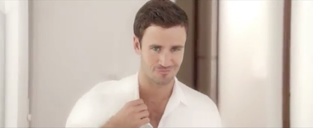The ad features what appears to be a romantic encounter between a woman and a man in a luxurious hotel room, until it becomes obvious that his cricket whites have got stains on them.