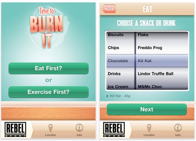 Rebel Sport iPhone app calculates exercise needed to burn off food