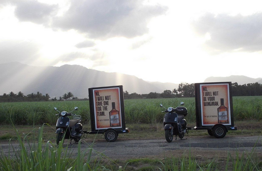 Vok Beverages has launched a mobile outdoor campaign that sees billboards advertising Rebellion Bay Spiced Rum mounted to the back of Vespa scooters and driven 2,800km from far north Queensland to Sydney.