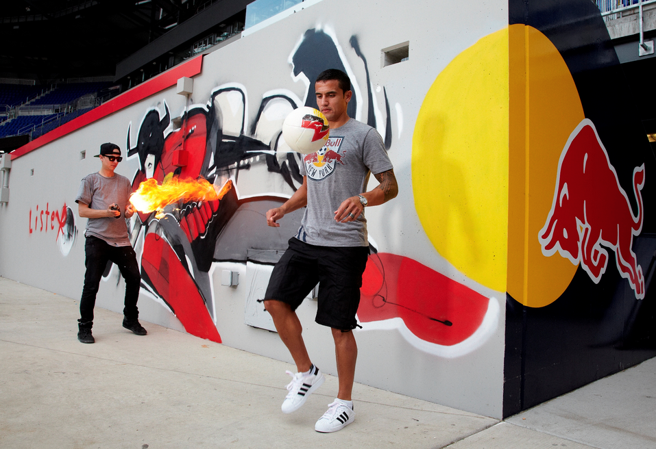 Timed to mark the first day of Spring, the campaign sees a superhero version socceroo Tim Cahill painted at New York Red Bull stadium to launch Red Bull’s cranberry flavour.