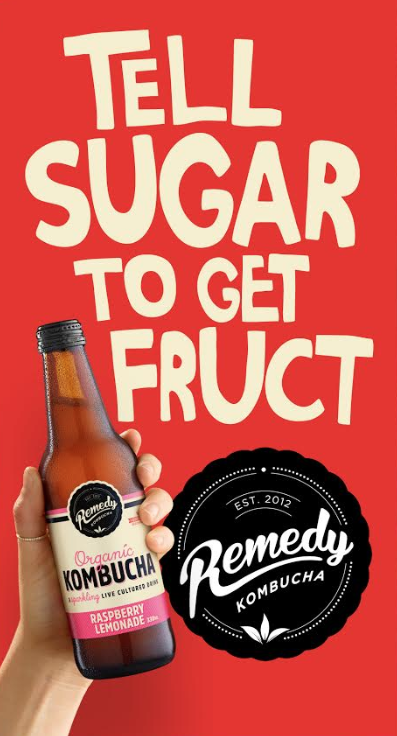 Remedy Kombucha has pushed its no sugar credentials in an outdoor advertisement which tells sugar to “get fruct”.