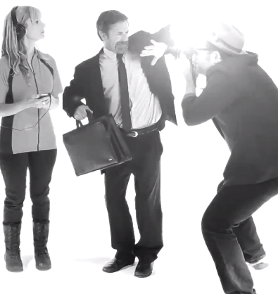 A paparazzi photographer harasses a member of the public in a new campaign created by mental health organisation Sane to promote responsible reporting by the media.