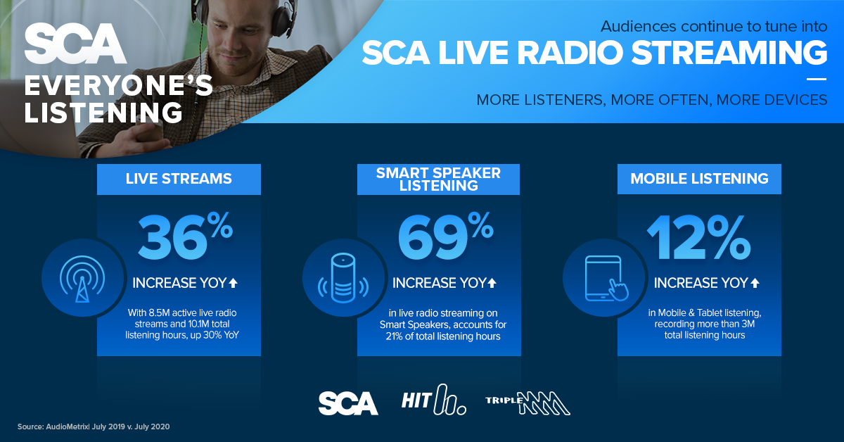 Southern Cross Austereo (SCA) has reported a 30% increase year-on-year in listening hours, and a 20% year-on-year increase in live radio streaming.