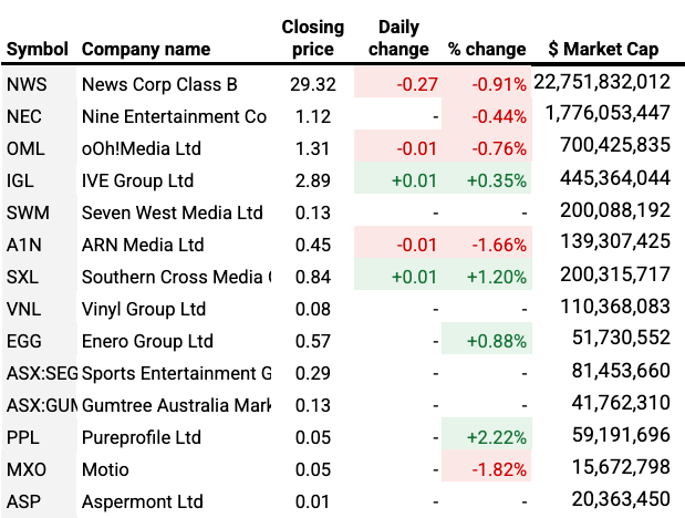 Southern Cross Austereo’s 1.2% improvement lifted it back above the $200m market capitalisation threshold, and took it back above SWM’s valuation.