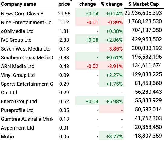 SWM lost 3.9% in late trading. At lunchtime the Australian Financial Review published correspondence uncovering how the SWM board, chaired by Kerry Stokes, discussed reputational crises including revelations about the personal conduct of former CEO Tim Worner and the the allegations of war crimes against its Queensland general manager Ben Roberts-Smith.