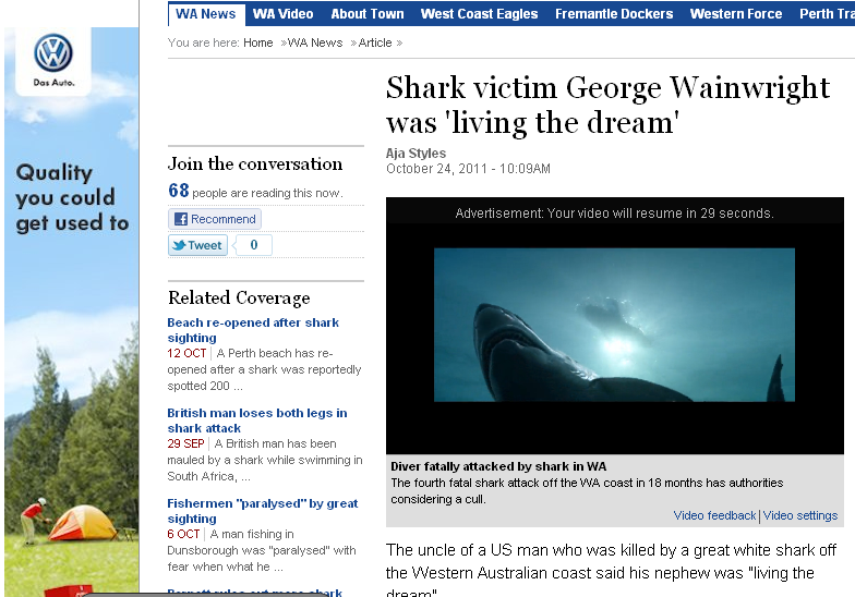 What’s the least sensitive ad you could imagine running around a story about a shark attack victim?
