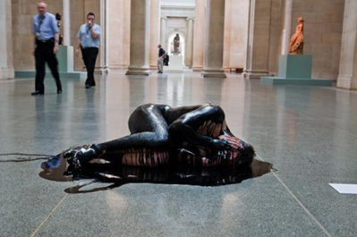 Meanwhile at the Tate gallery in London, culture jamming was being taken up a notch. Protesting against BP’s sponsorship of the gallery, and marking the one-year anniversary of the Deepwater Horizon rig explosion, an activist covered in oil curled up on the floor in the sculpture section of the gallery for 87 minutes — one for every day oil spilled into the Gulf of Mexico.