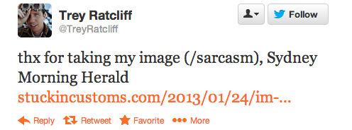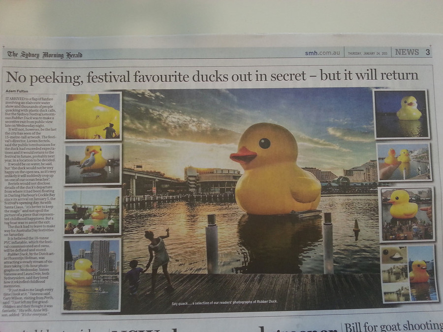 Trey Ratcliff, who runs the blog Stuckincustoms.com, wrote a blog post accusing the newspaper of breaching the Creative Commons licence on his site by using a photo of Florentijn Hofman’s Sydney Festival installation “Rubber Duck” and presenting the image as having been voluntarily submitted.
