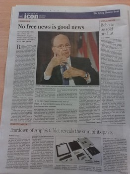 The topic of discussion was Rupert Murdoch’s comments about how the Apple iPad “may well be the saving of the newspaper industry”.