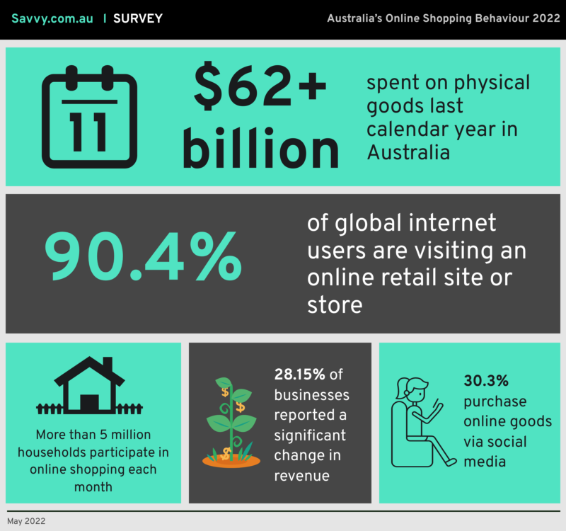Australians have spent a record $62.3 billion online in the last calendar year, with 30.3% of Australians have purchased online goods via social media, according to a Savvy report.