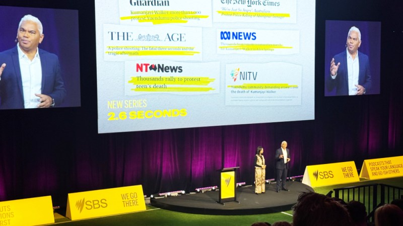 SBS national Indigenous affairs editor John Paul Janke and NITV national sales manager Anna Dancey announce the documentary 2.6 Seconds