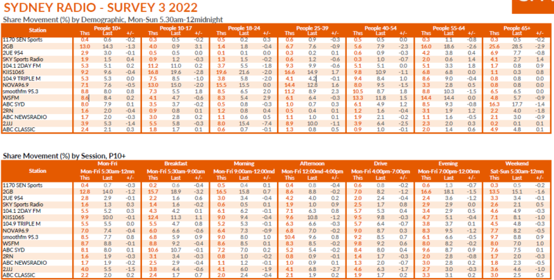 Kyle & Jackie O saw a growth of 1.1 points to a 12.4% share, however, KIIS FM in People 10+ lost in audience share from 9.6% to 9.2%, a bump of 0.4 percentage points.