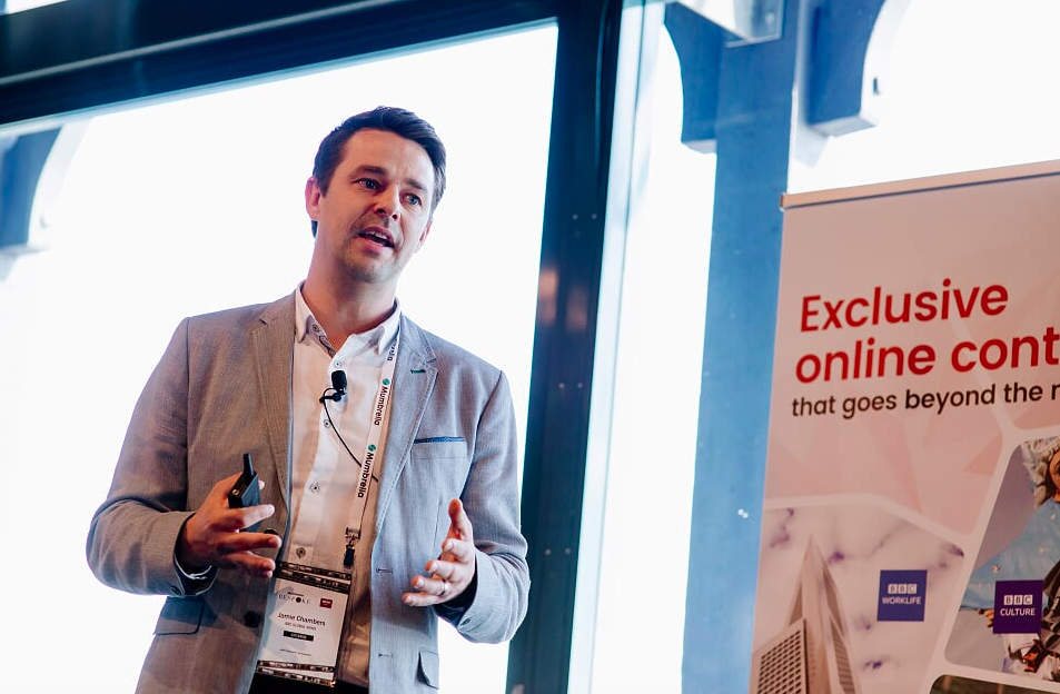 The BBC’s Jamie Chambers opened the broadcaster’s sponsored Mumbrella Storytelling Summit last month
