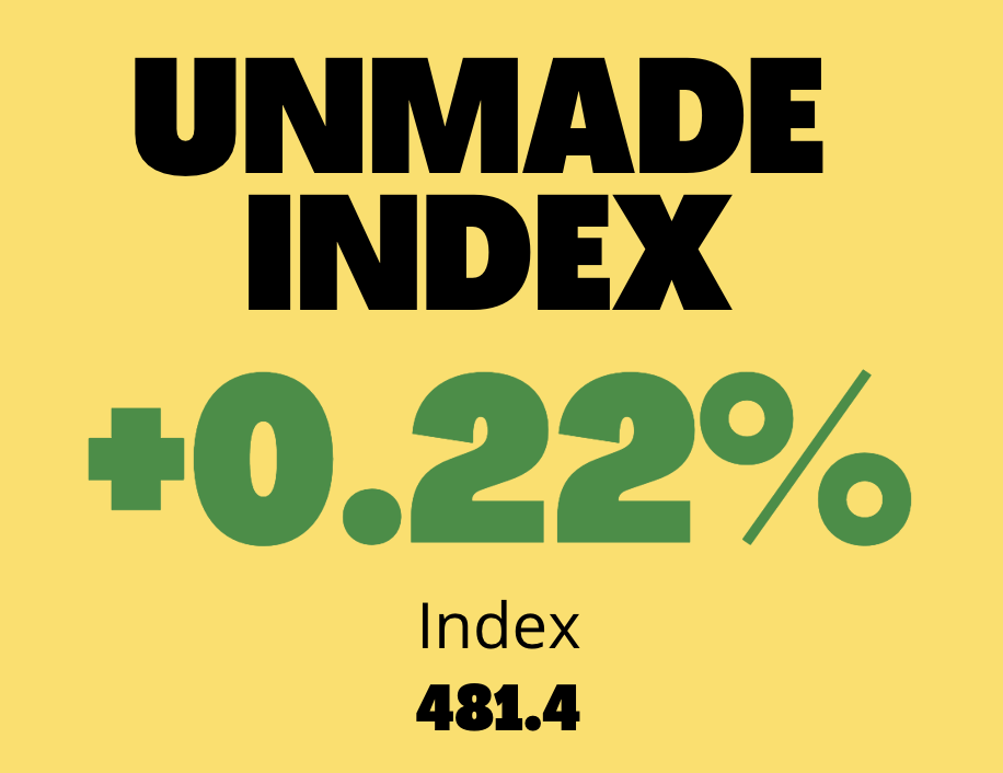 The Unmade Index ended the day narrowly in positive territory, up by 0.22% on 481.4 points.