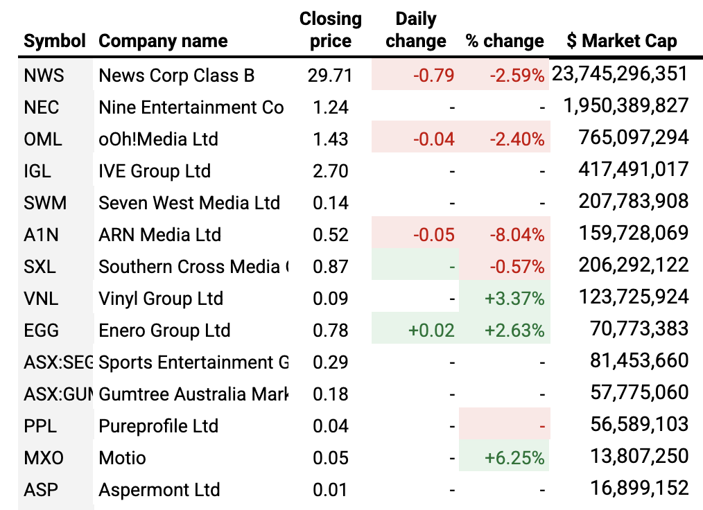 ARN Media, which had been a beneficiary of consolidation mania, also took a big hit yesterday, with its share price dropping by 8% to a market cap of $159.7m.