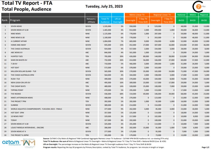 Seven has secured another network win on Tuesday night, as The Chase Australia topped entertainment.