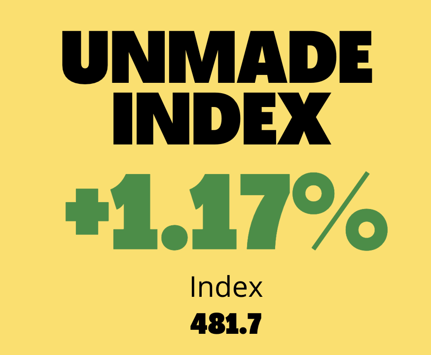The Unmade Index ended the day on 481.7 points, up by 1.17%.