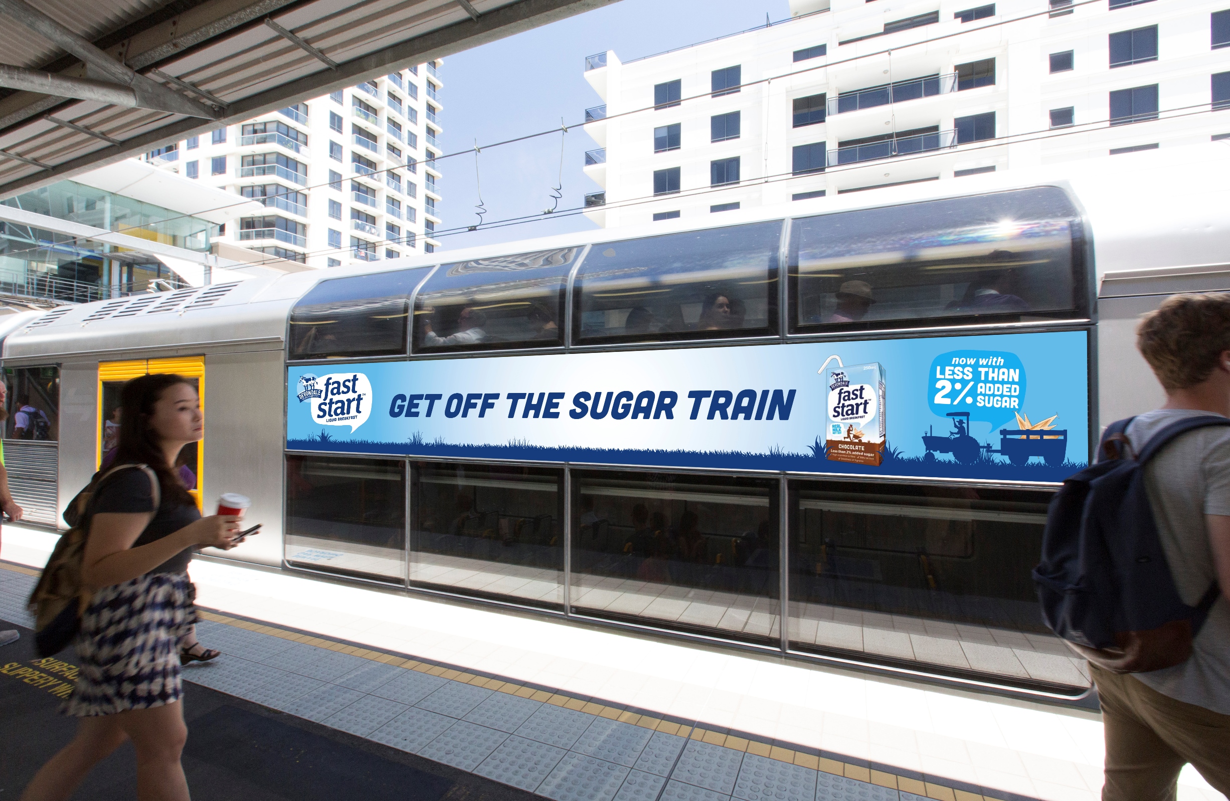 Launching mid-April, the Devondale campaign promotes the brand’s breakfast drink Fast Start with the slogan “Get off the sugar train”.