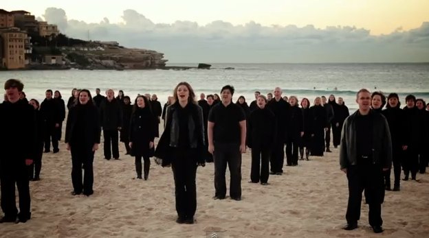 Great Southern Land, which was written while Davies was on a Qantas flight over central Australia in 1981, is performed in TA’s video by artists including Katie Noonan, Van She, Eskimo Joe, The Sydney Philharmonia Choirs and Cut Copy.