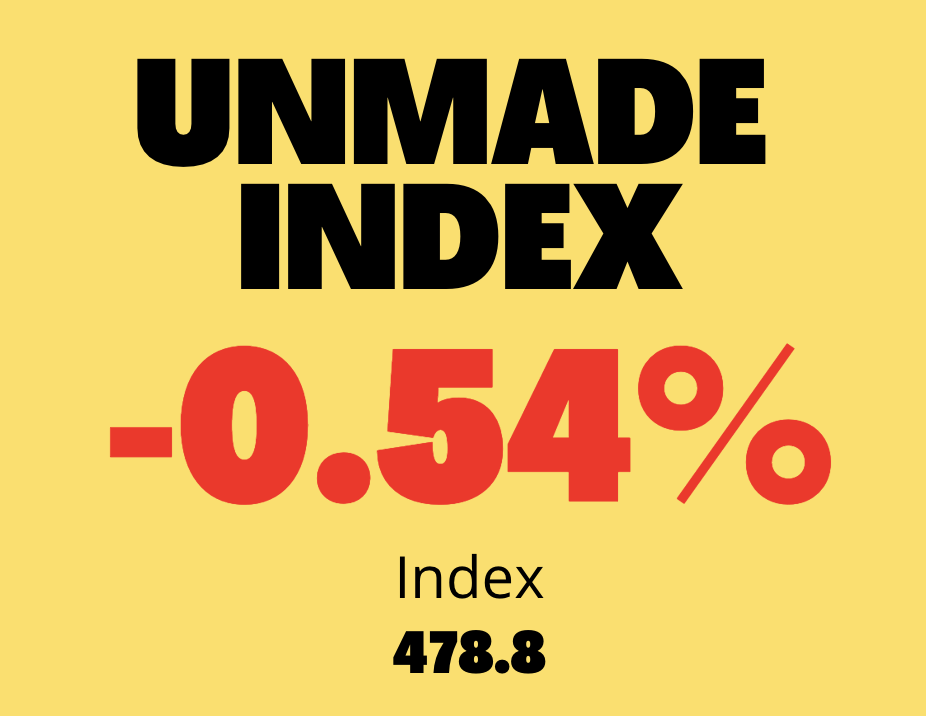 The Unmade Index lost 0.54%, landing on 478.8 points for the day.