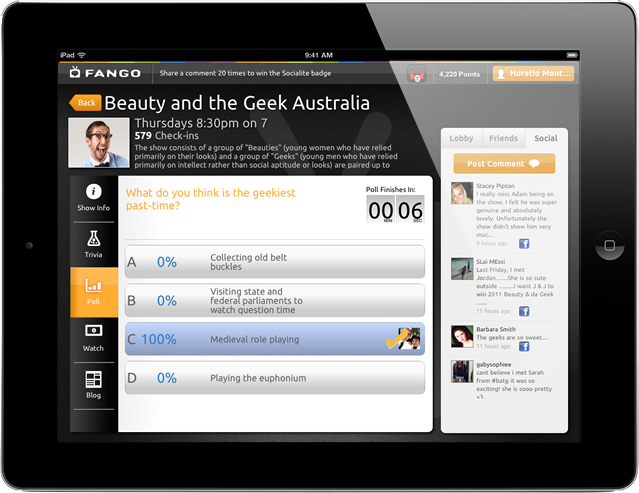 None of the current major players are making much headway. Firstly this is not for everyone – only for people that love love ‘specific’ TV shows. Secondly, penetration of ‘tech savviness’ across mainstream commercial channel viewers does not compare to UK or Europe. Thirdly, media partisanship is more entrenched in AUS than in UK or Europe. Have a look at US second screen engagement – it is poor. I think locally all three players in the market are doing a comparably good job.