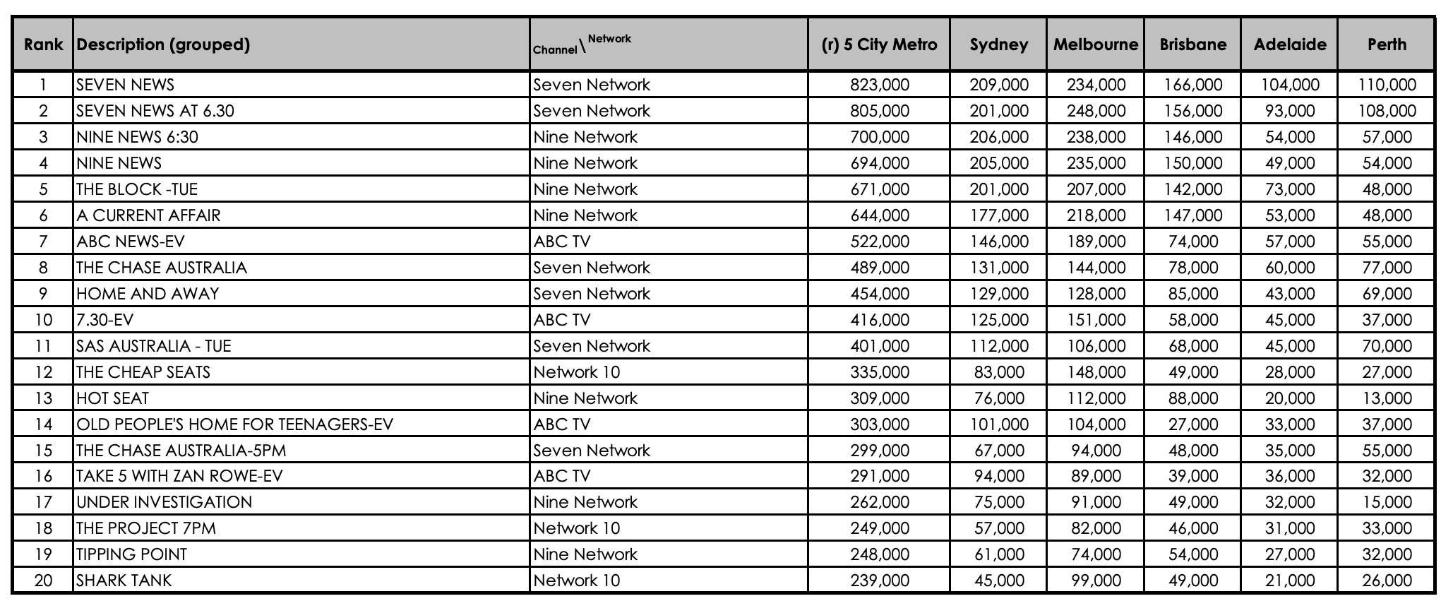 There were no real surprises for the night, with The Chase and Home and Away performing well for Seven (who pulled 28.5% of viewers), and Old People’s Home For Teenagers, and Take 5 with Zan Rowe (and Natalia Imbruglia) capturing the feel-good audience for ABC, who pipped Ten for third place, with 16.9% and 16%, respectively.