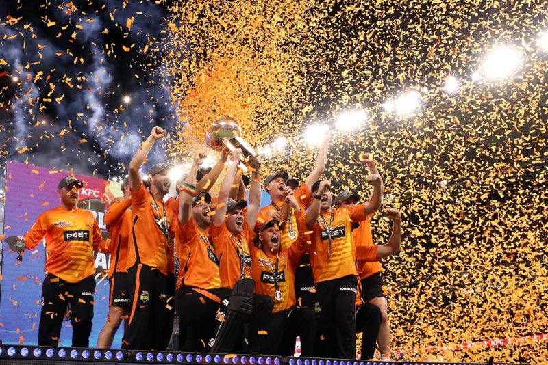 The Scorchers celebrate with the trophy after winning the Men’s BBL final match. Source: Facebook