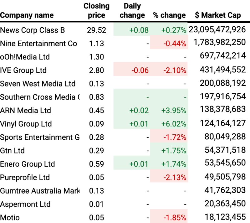 Struggling media stocks ARN Media and Vinyl Group both delivered mini recoveries on Thursday with ARN bouncing back 3.95% on yesterday’s all time low, and Vinyl Group improving by 6%.