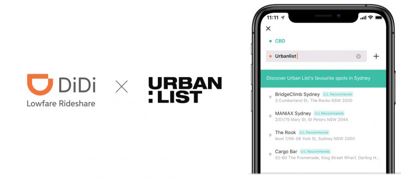 Urban List has curated an in-app list of destinations and venue recommendations which appears when a Didi user in Sydney, Brisbane or Perth searched ‘Urbanlist’ in the trip destination box.