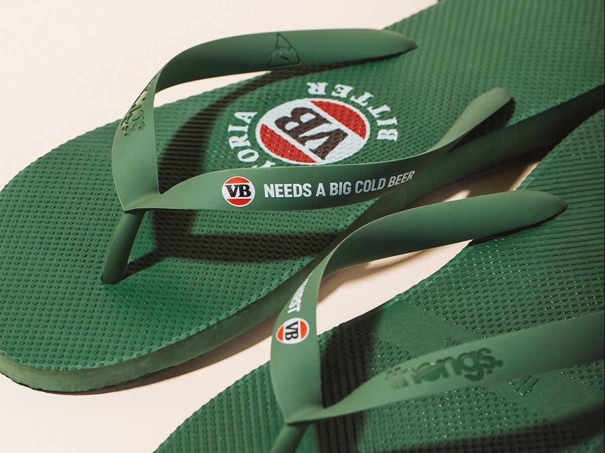 Victoria Bitter has teamed up with Thongs – the Australian-made thongs brand – to release the “ultimate fashion accessory for the Australia Day long weekend”: a pair of VB branded thongs.