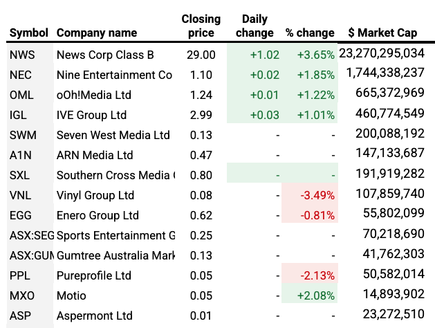 Vinyl lost 3.5% to finish Monday on a market capitalisation of $108m. Meanwhile the wider ASX All Ordinaries gained 1.3% for the day, and the Unmade Index – which tracks Australia’s listed media and marketing stocks – gained 0.95%.