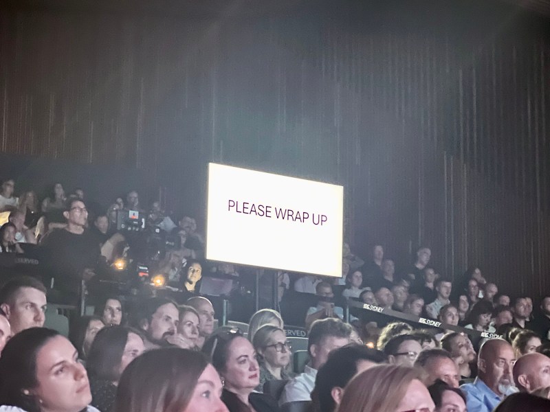 Later it was the turn of 2GB’s Ben Fordham. Like O’Connell, he had stories to tell the audience about how he covered Bondi. However, Fordham may have gone a little too long. Breaking the fourth wall somewhat, Fordham pointed to the autocue, featuring the polite instruction: “PLEASE WRAP UP”