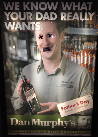 This Dan Murphy’s poster on Melbourne’s Elizabeth Street promoting its cut-price booze has got the Father’s Day treatment.