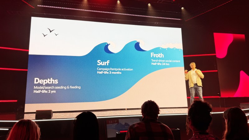 Jones’ analysis of the content ecosystem lent heavily on an aquatic theme that divided marketing content into “froth”, “surf” and “depths” – corresponding to video with different shelf lives and emotional engagement.